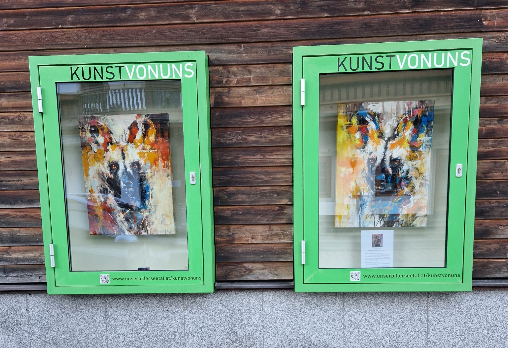 Unsere lokalen Künstlerinnen und Künstler gestalten regelmäßig die alten Schaukästen vom ADEG in der Dorfstrasse in Fieberbrunn mit regionaler Kunst. Gemeinsam mit dem Kulturverein, dem Regionsmarketing und der Pillerseetal Wirtschaft setzen wir uns dafür ein, Kunst direkt vor der Haustür erlebbar zu machen.