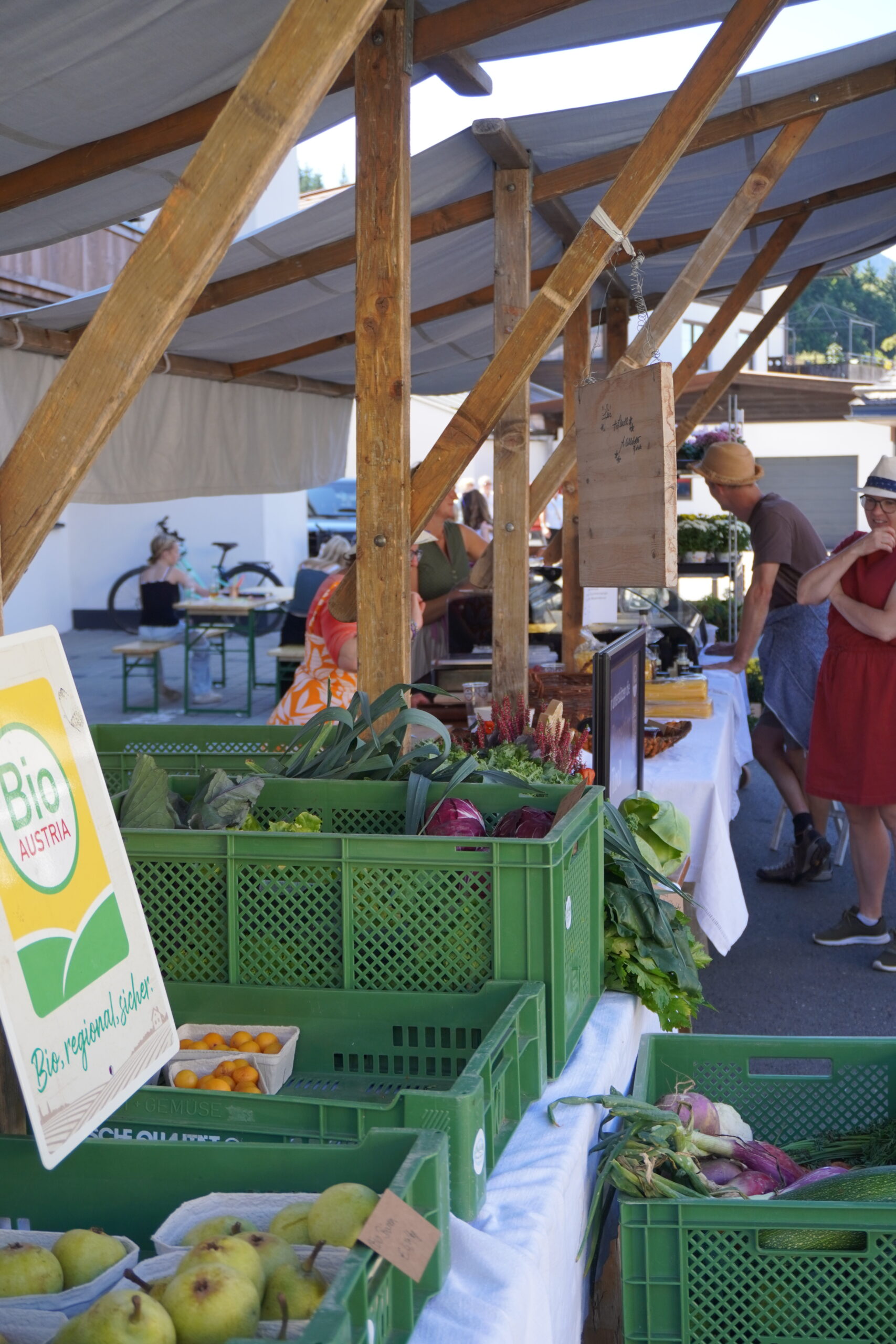 Marktstände mit frischen Blumen, Obst & Gemüse, Schmankerln & Schnäpsen!